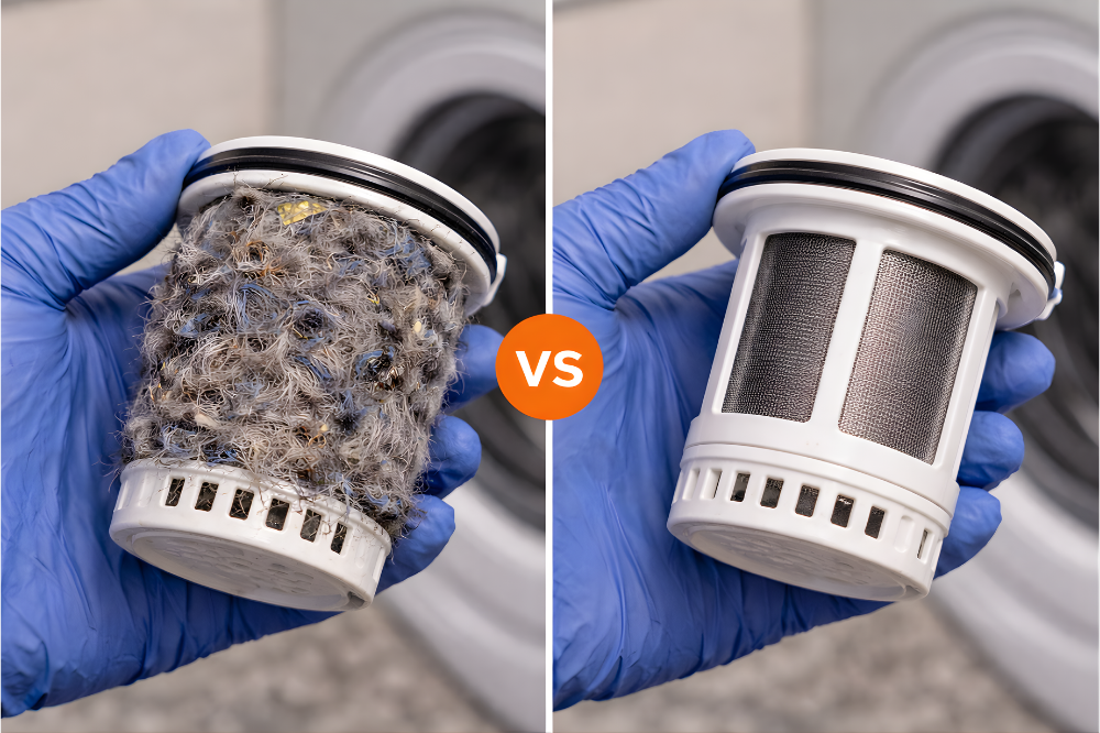 Pet hair doesn’t stop at your clothes. During a wash cycle, loose hair can slip past the drum and collect inside filters, drain pumps, and internal hoses, where it gradually builds up over time.